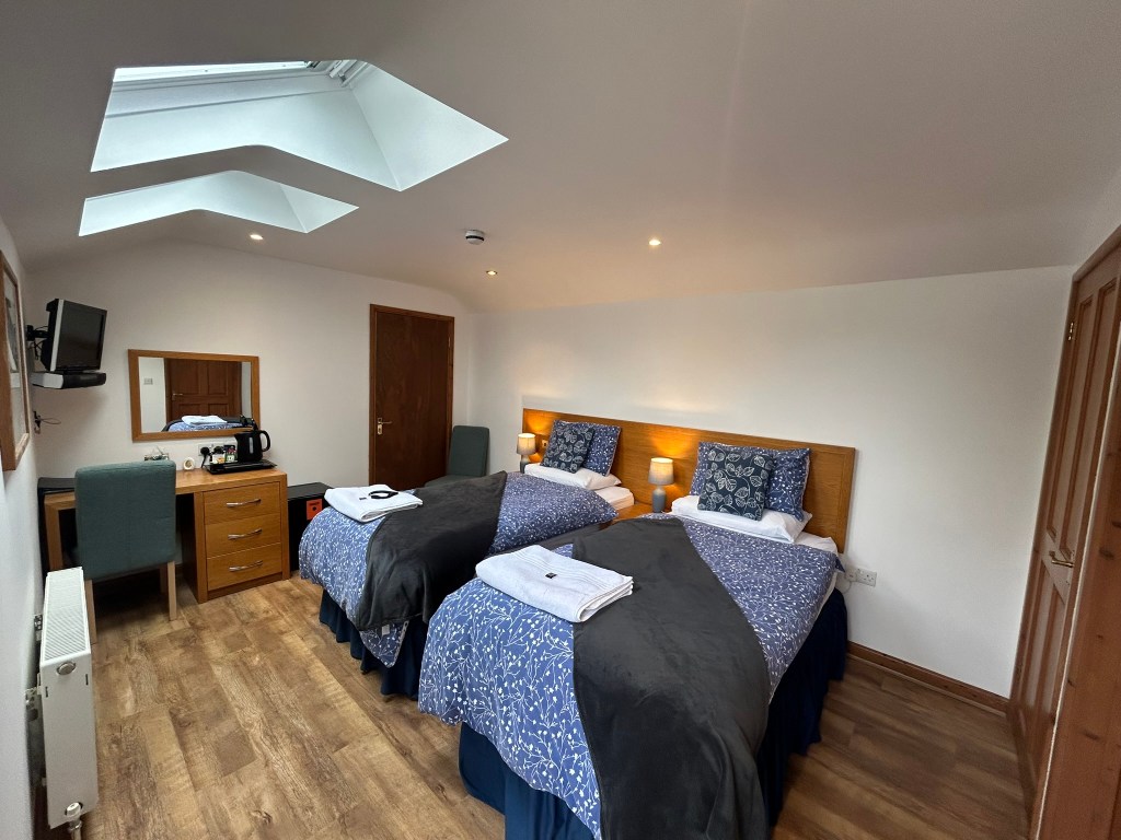 Accessed from the front with a parking space directly outside Room Three has a King Sized Bed. There is a side window to let in plenty of light and space to relax and enjoy a cup of tea. The ensuite has a large bath with overhead power shower.